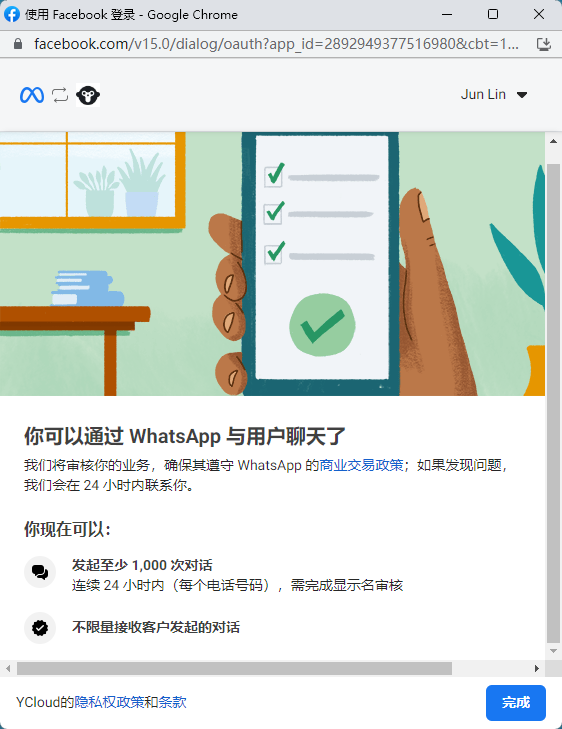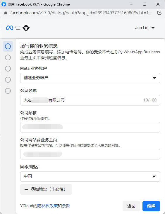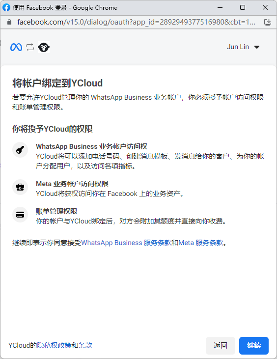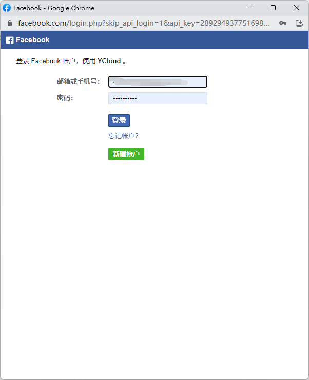 在弹出的Facebook授权页面里输入Facebook账号进行登录,此账号需要有Facebook商业账号的管理权限。