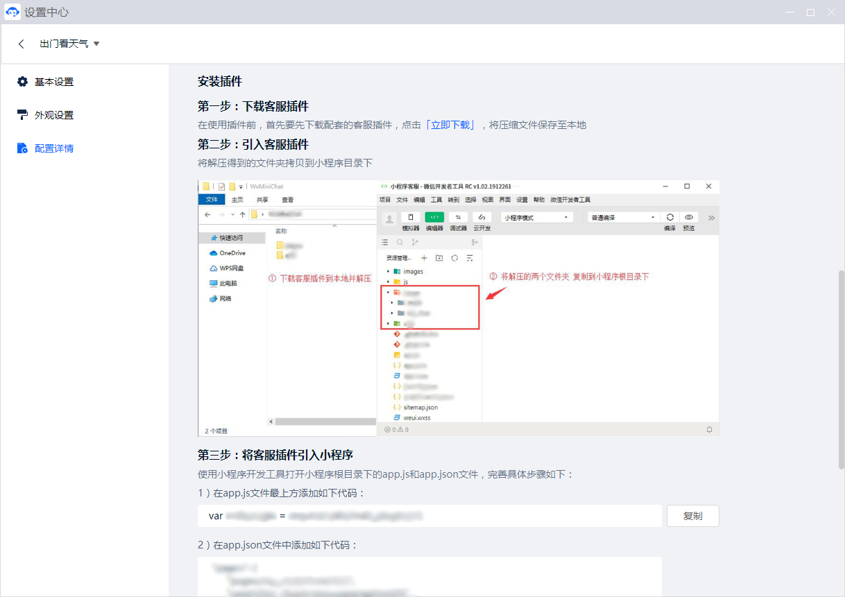 小程序插件绑定成功后,点击对应小程序的【管理】按钮,并找到下一页面的【配置详情】项。