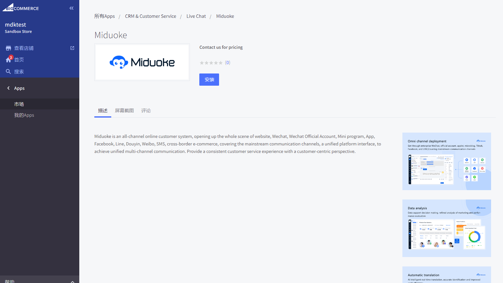 如何在您的 BigCommerce 商店中安装米多客企业版,安装方式有两种:插件安装、JavaScript代码安装。