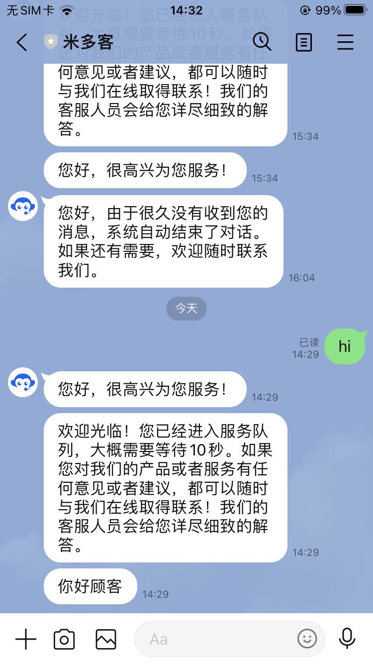 客人通过LINE发送消息,客服将在对话列表中及时收到对话内容。