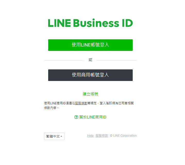 进入网站 https://account.line.biz/login?redirectUri=https%3A%2F%2Fmanager.line.biz%2F ,并根据需要进行登录或者创建官方账号。