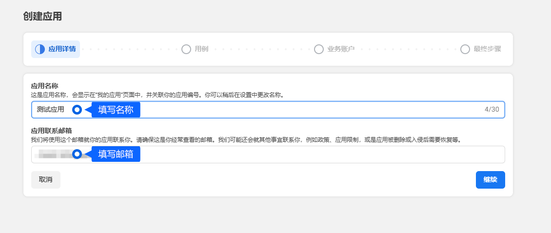 登录后点击【我的应用】会列出已创建应用,点击【创建应用】(如果使用已存在应用接入米多客,则跳过该步骤)。