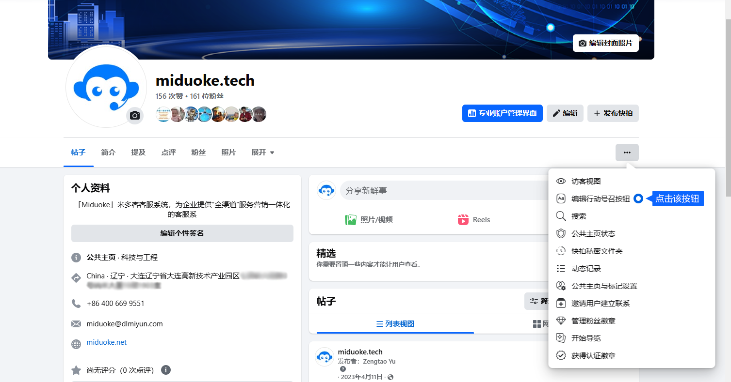 - 点击右侧【…】按钮,并点击【编辑行动号召按钮】;