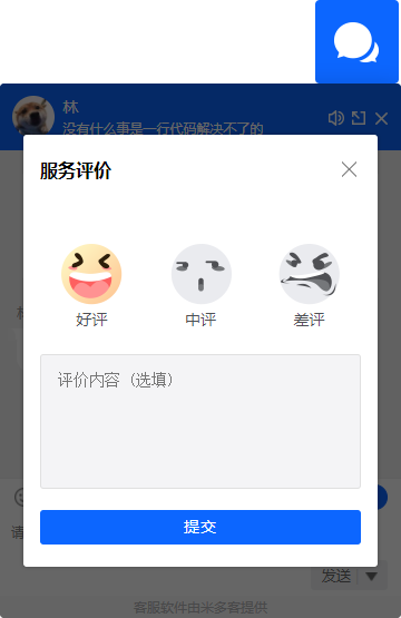 与客人对话过程中或对话结束时,可以手动或自动发送评价邀请,邀请客人对本次对话进行评价,评价数据将记录到「统计报表」中,方便管理员查看每位客服的被评价情况与工作质量。